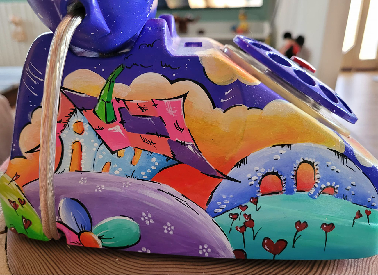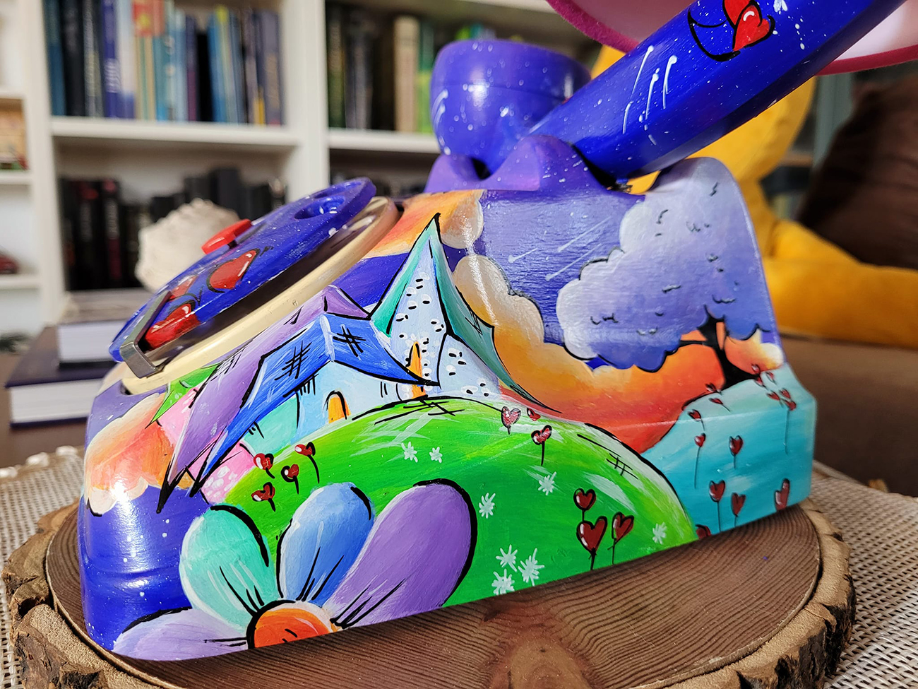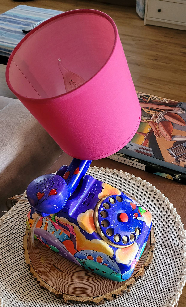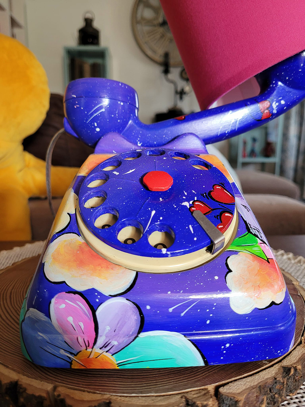 Lampada dipinta a mano ricavata da vecchio telefono.