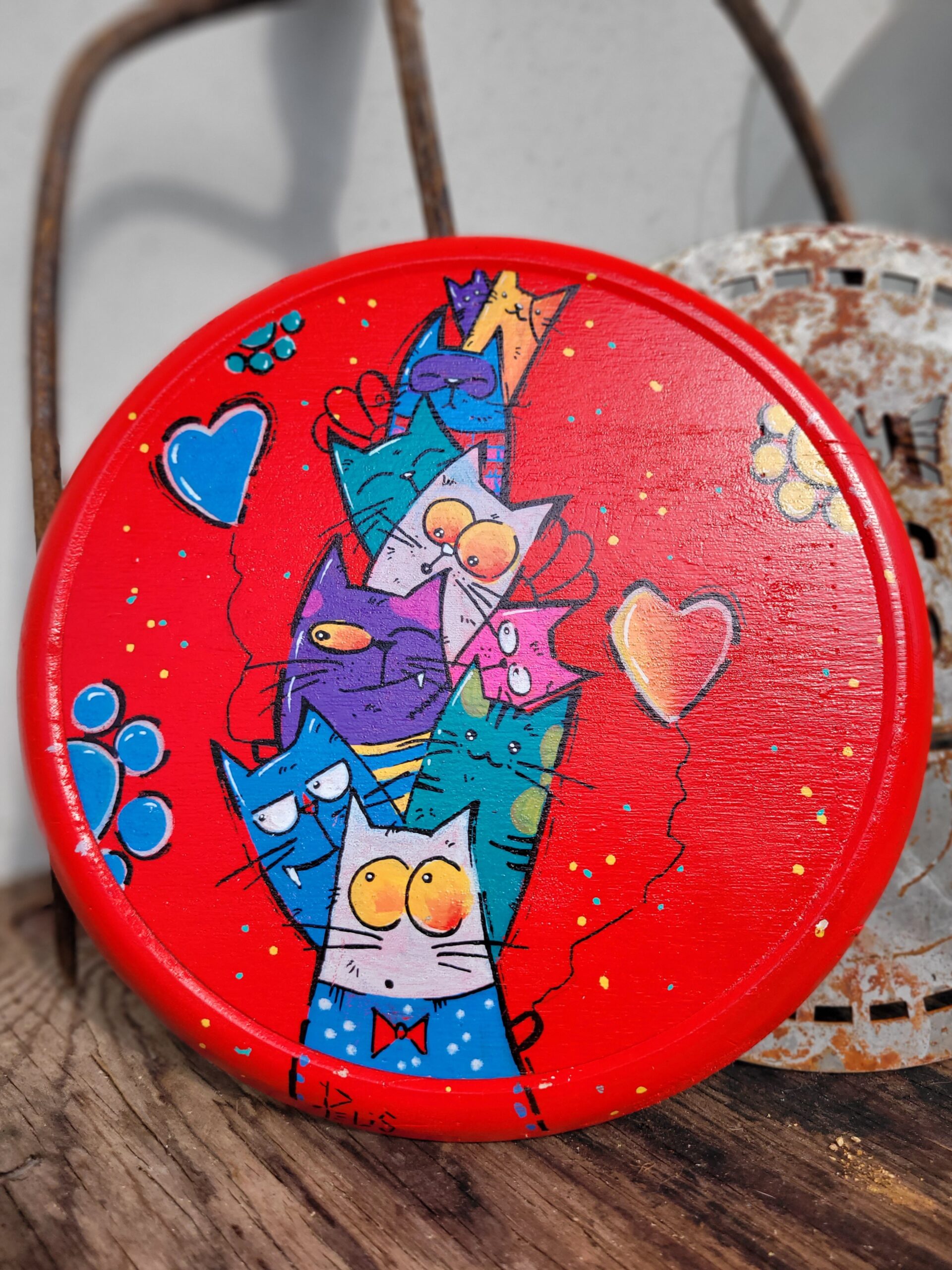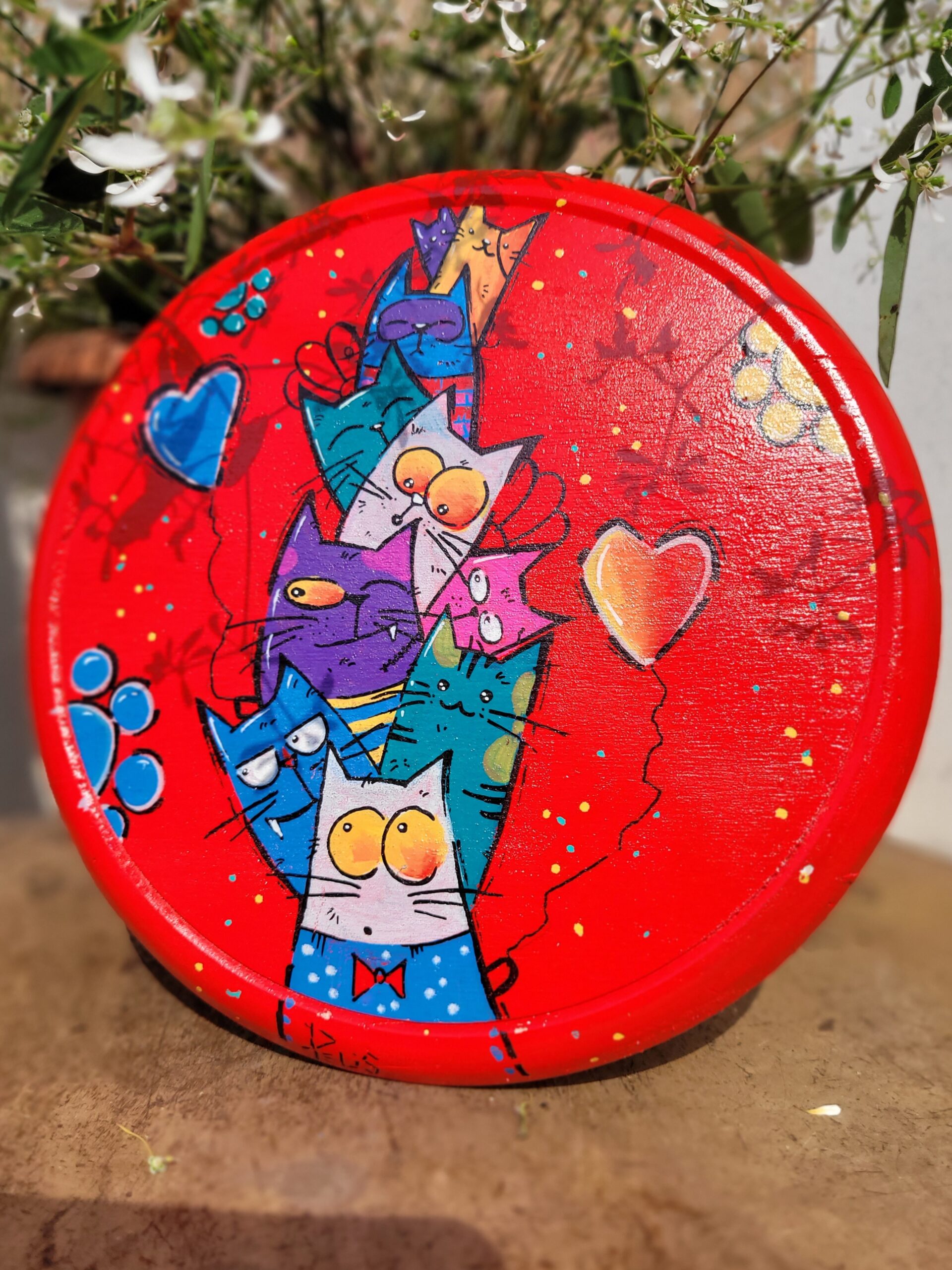 Base in legno dipinta a mano.